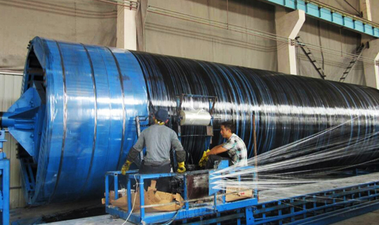 將制作好的加強(qiáng)筋嵌入筒體,并通過樹脂及玻纖布將加強(qiáng)筋與筒體融為一體;