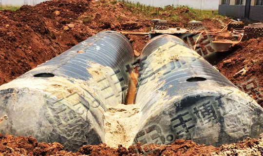 2、兩個產品并聯(lián)安裝:擔心土質沉降不均勻,或人工安裝時,造成兩個化糞池進水口不可能一致,結果是兩個化糞池分流不均勻,一個超負荷,一個可能是擺設.